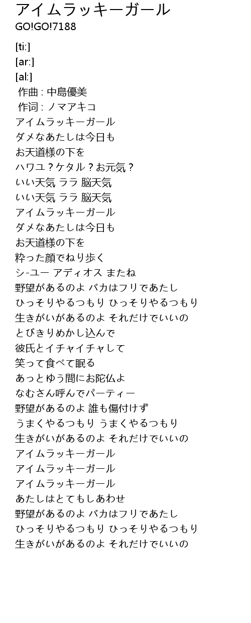 | [00:59.47] | 野望があるのよ バカはフリであたし |
