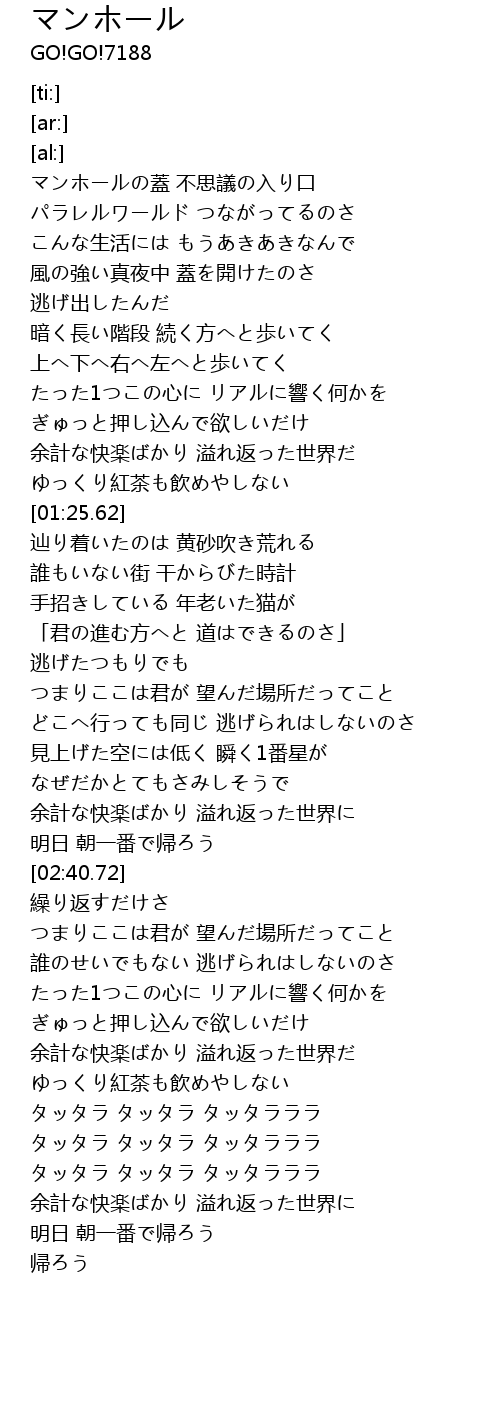 | [00:17.90] | マンホールの蓋 不思議の入り口 |