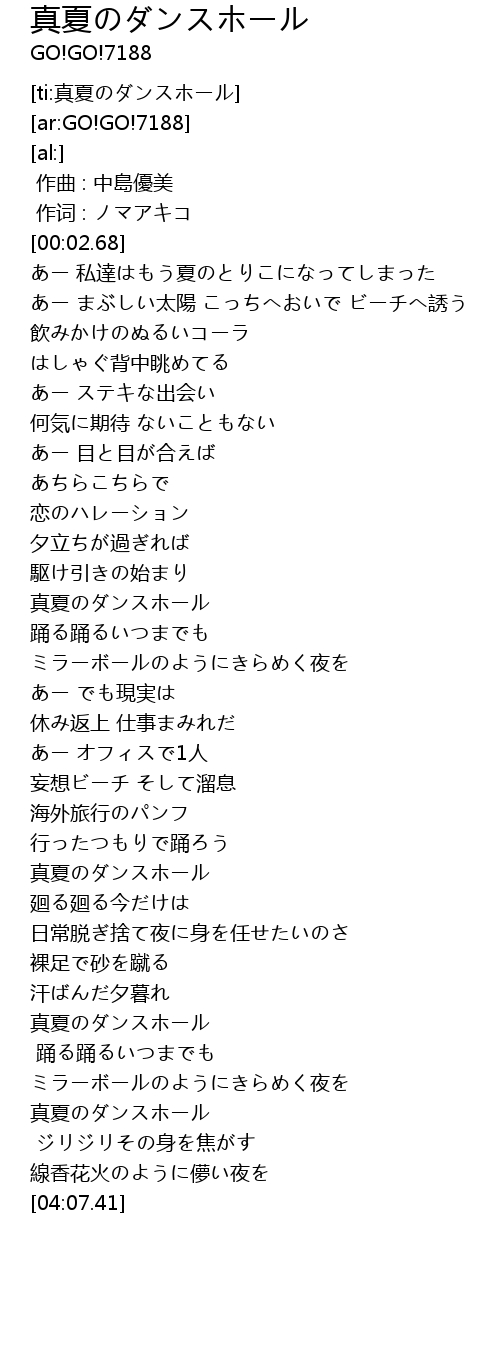 | [03:33.04] | 真夏のダンスホール |