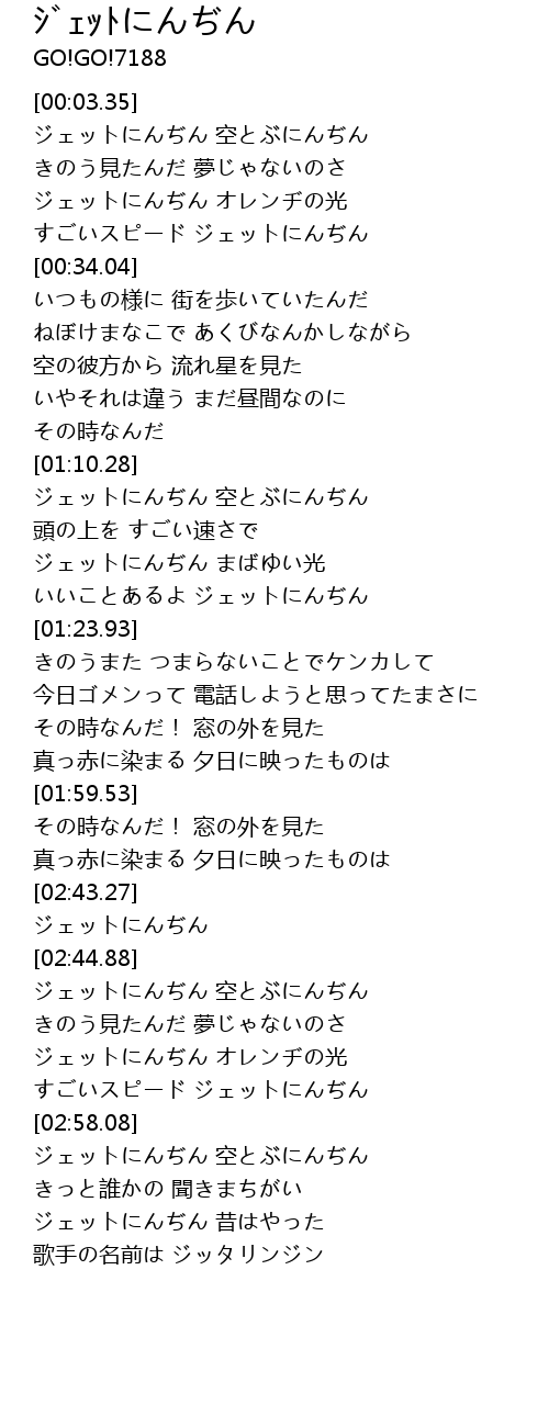 | [02:51.59] | ジェットにんぢん オレンヂの光 |