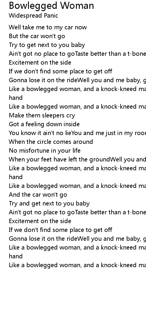 Like a bowlegged woman, and a knock-kneed manWell you and me baby, go hand in hand |