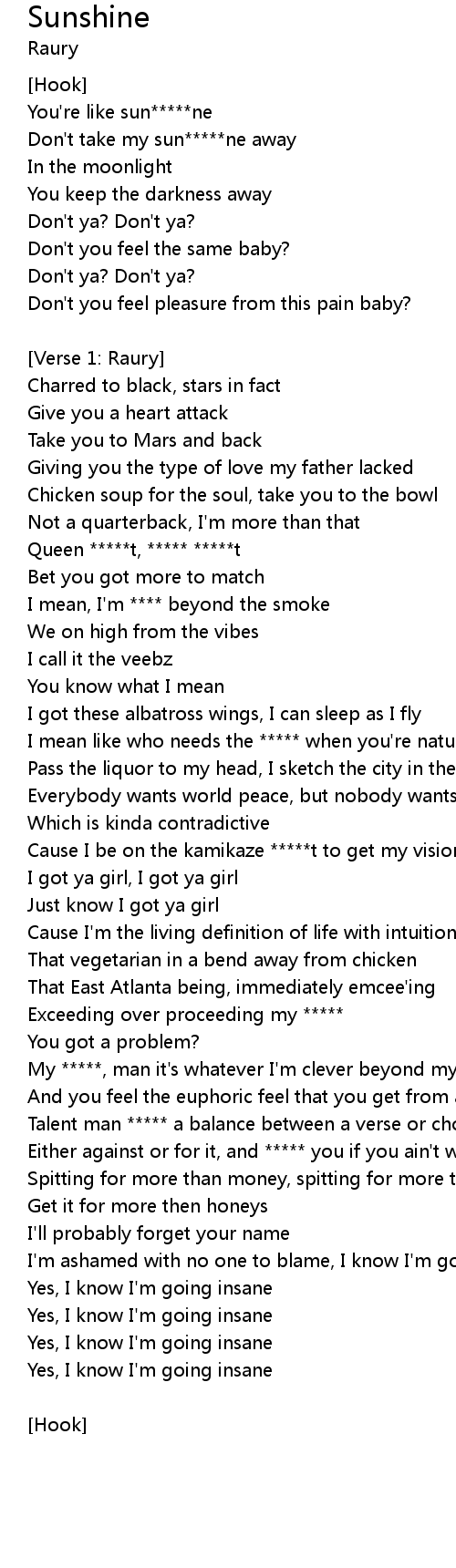 Don't take my sun*****ne away |
