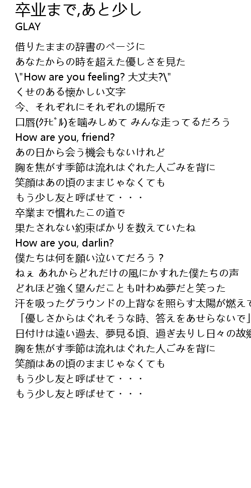 | 「優しさからはぐれそうな時、答えをあせらないで」と | |
