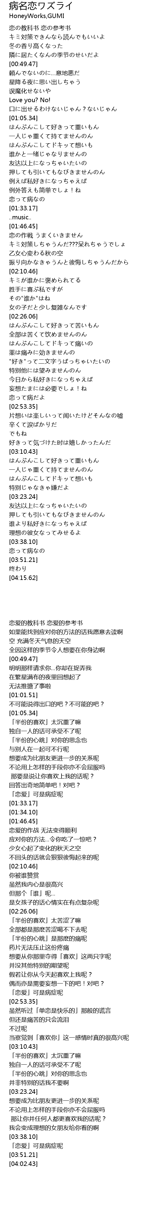| [02:51.64] | 恋って病だよ |