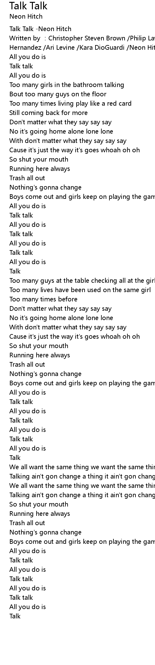 | [00:00.00] | Talk Talk -Neon Hitch |