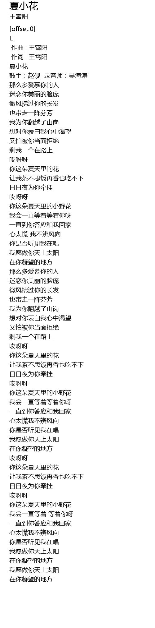 | [02:45.138] | 你这朵夏天里的小野花 |