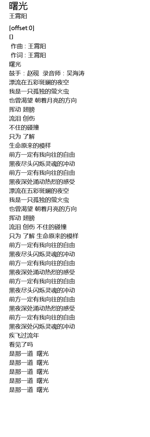 | [00:00.298] | 作词 : 王霄阳 |