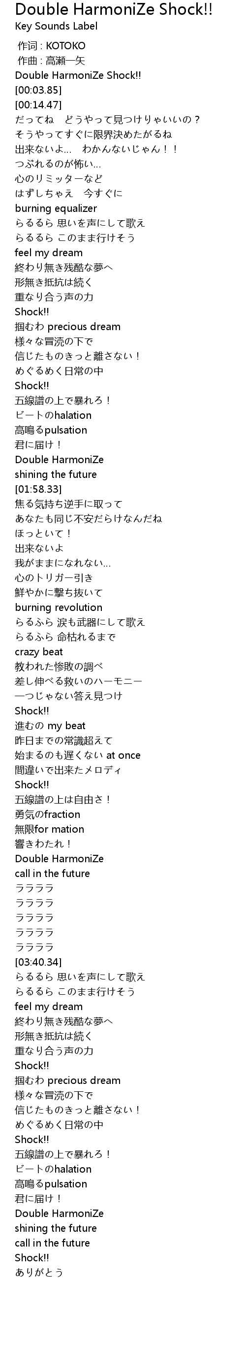 | [00:01.14] | Double HarmoniZe Shock!! |