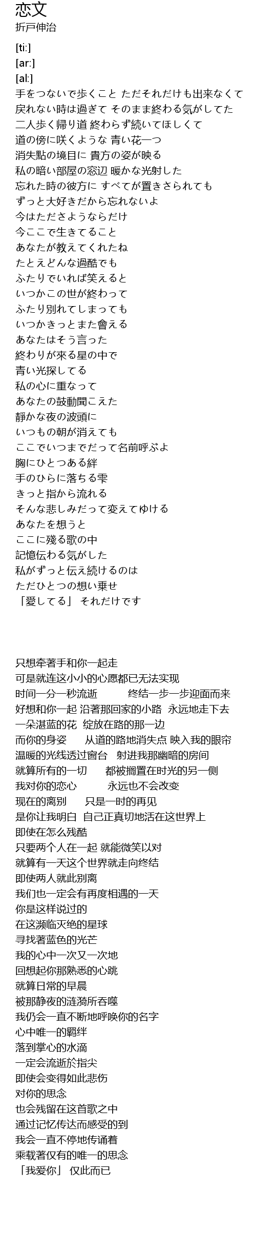 | [00:30.16] | 手をつないで歩くこと ただそれだけも出来なくて |