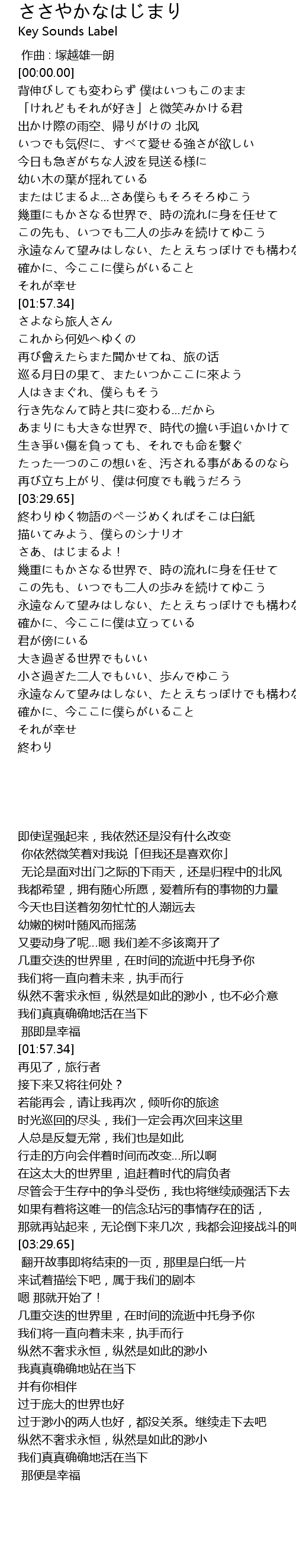 | [00:00.00] | 作曲 : 塚越雄一朗 |