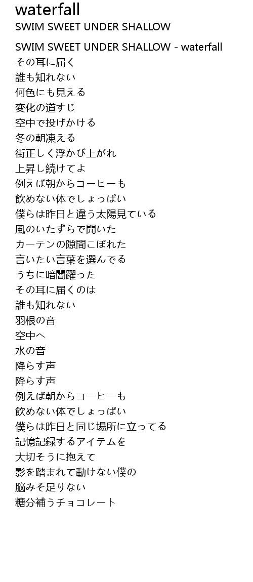 | [00:00.000] | SWIM SWEET UNDER SHALLOW waterfall |