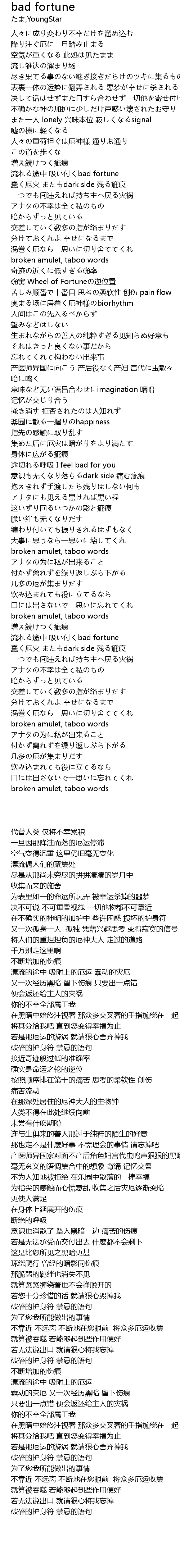 | [03:28.46] | 流れる途中 吸い付くbad fortune |
