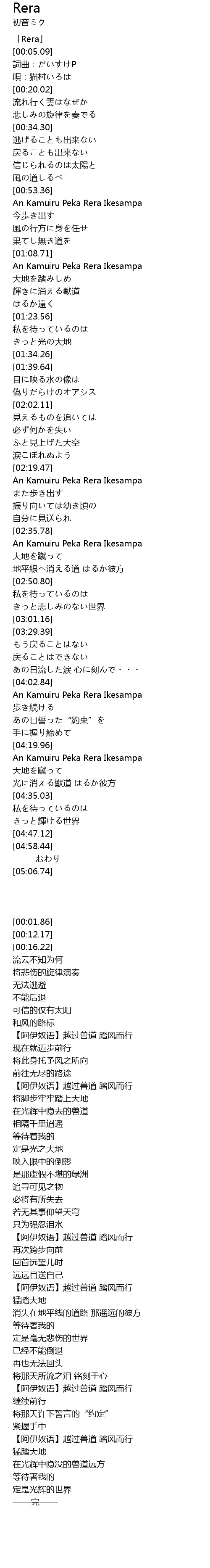 | [04:05.01] | An Kamuiru Peka Rera Ikesampa |