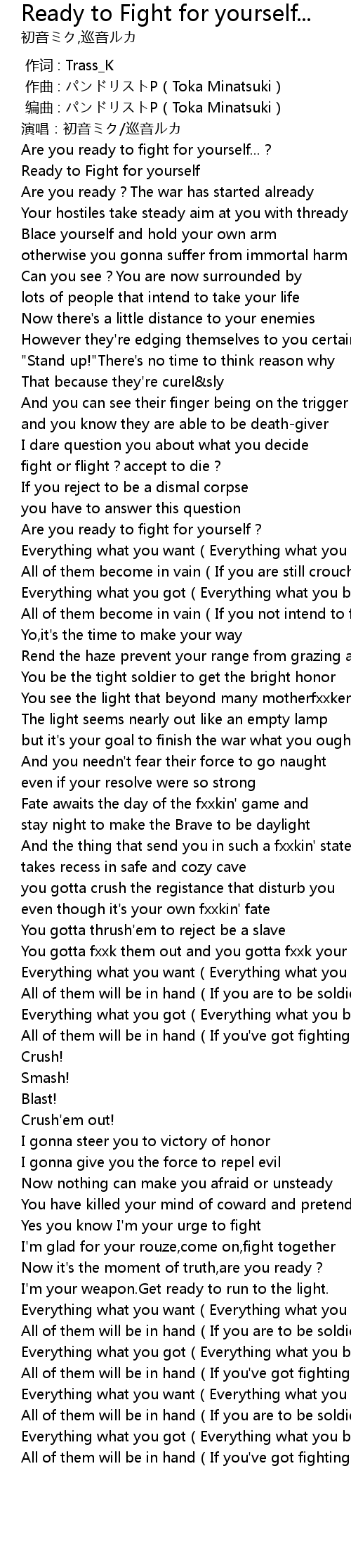 | [00:12.22] | Ready to Fight for yourself |