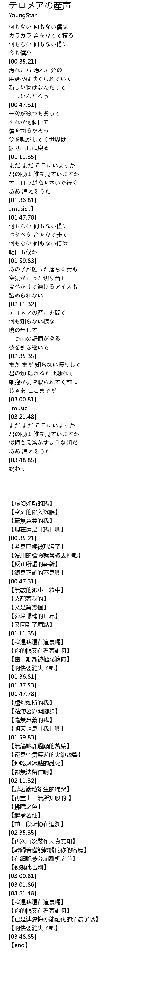 | [02:13.09] | テロメアの産声を聞く |