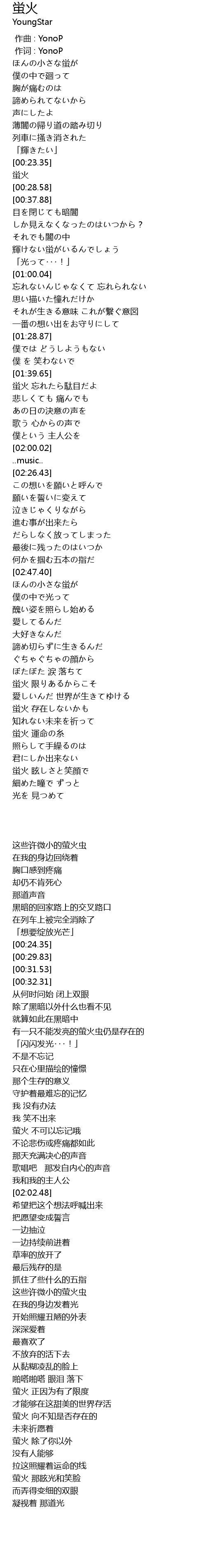 | [01:41.14] | 蛍火 忘れたら駄目だよ |