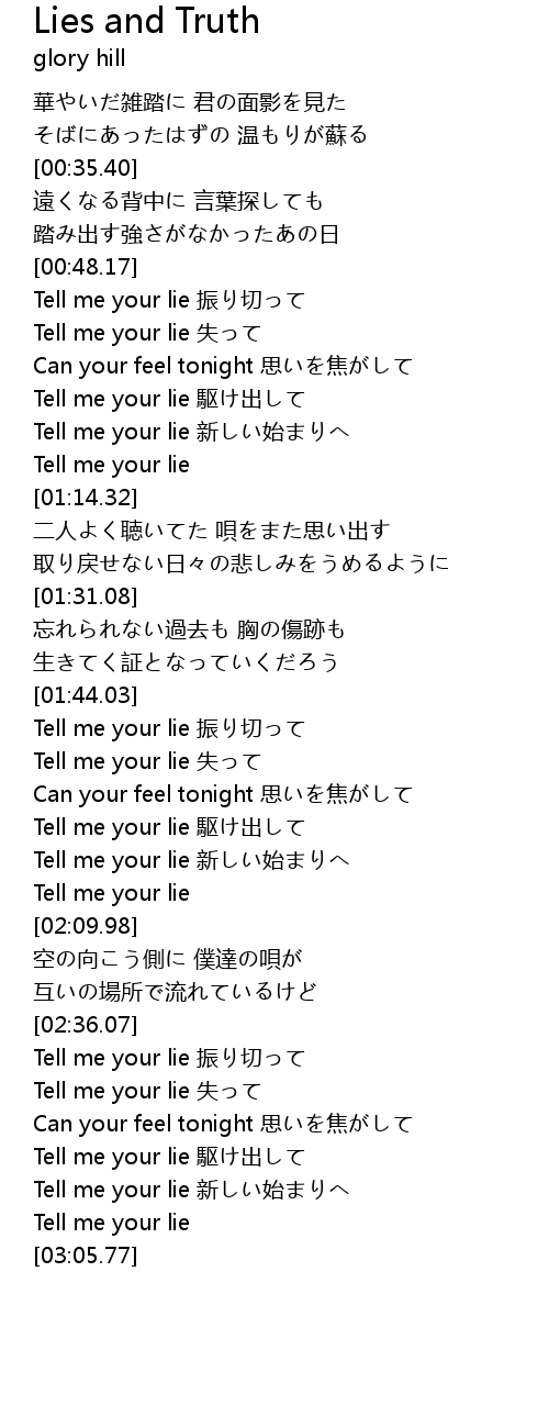 | [02:56.74] | Tell me your lie 新しい始まりへ |