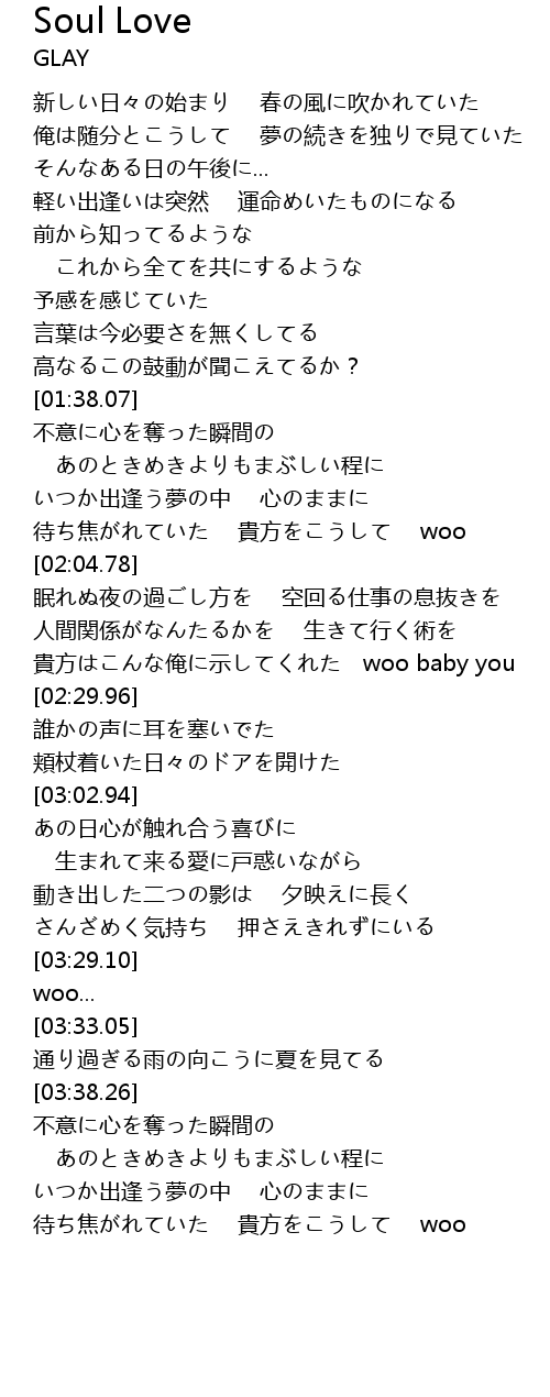 | [03:04.19] | あの日心が触れ合う喜びに 生まれて来る愛に戸惑いながら |