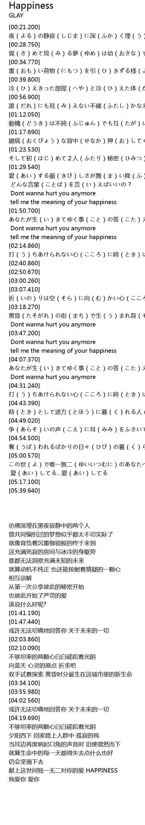 | [01:47.440] | tell me the meaning of your happiness |