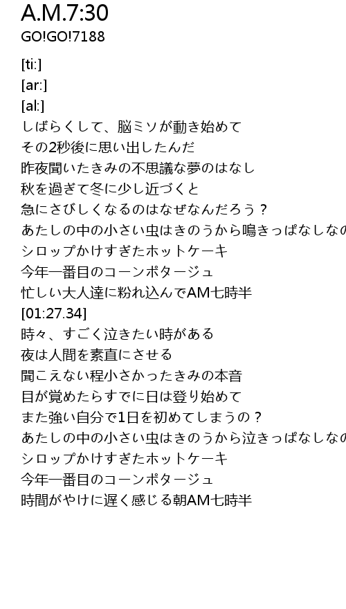 | [02:48.67] | 時間がやけに遅く感じる朝AM七時半 |