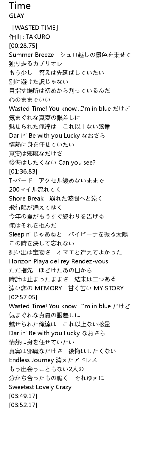 | [00:01.75] | 「WASTED TIME」 |