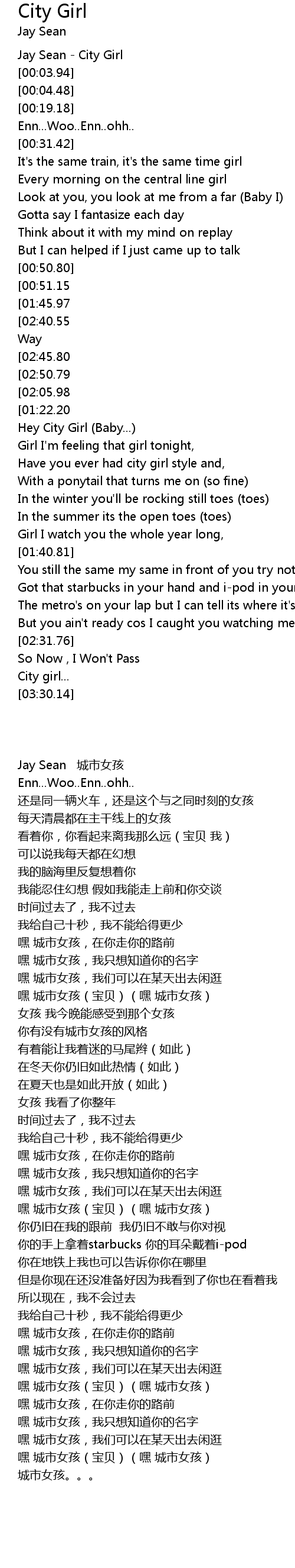 | [00:00.01] | Jay Sean - City Girl |