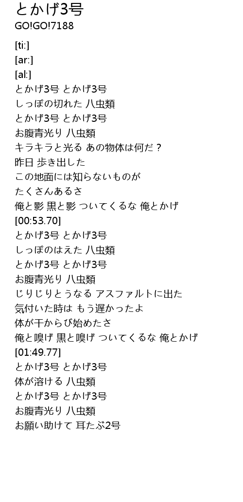 | [02:51.72] | とかげ3号 とかげ3号 |