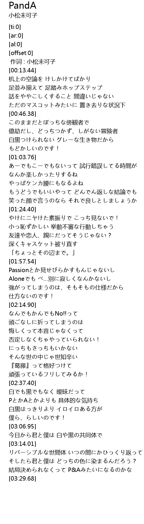 | [02:55.89] | PとかAとかよりも 具体的な気持ち |