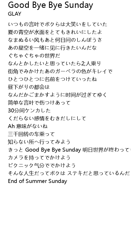 | きっと Good Bye Bye Sunday 明日世界が终わっても大丈夫 | |