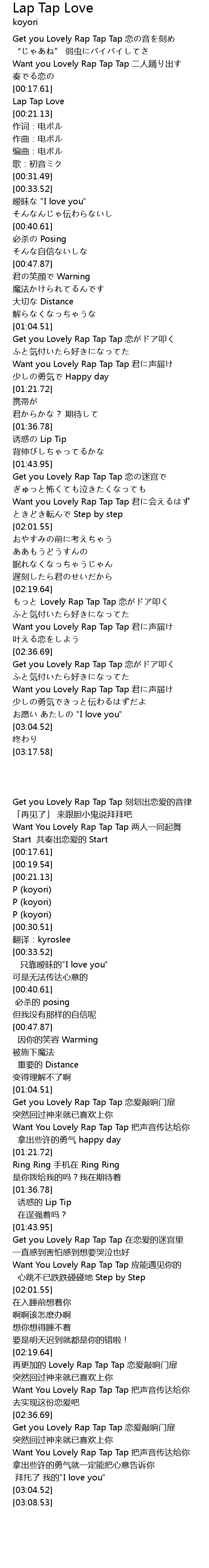 | [02:20.54] | Lovely Rap Tap Tap lian kou |