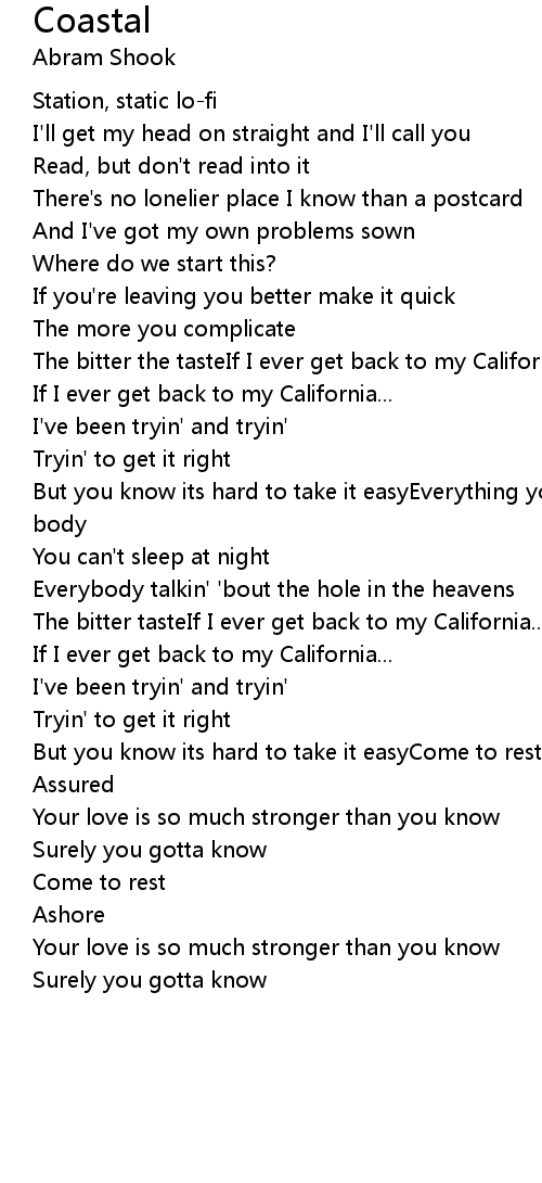 The bitter the tasteIf I ever get back to my California... |