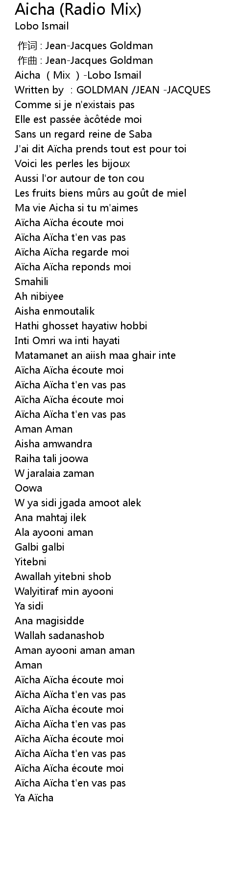 | [00:00.00] | Aicha (Mix )-Lobo Ismail |