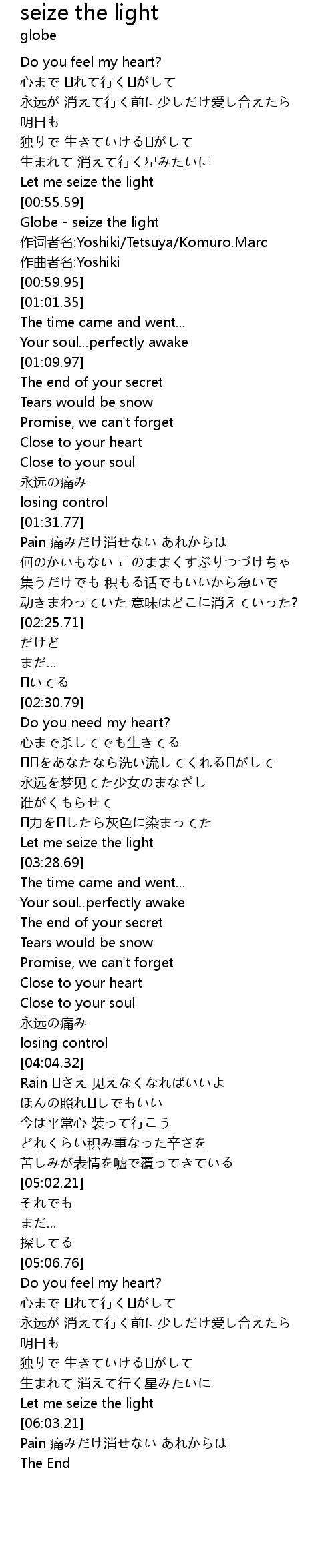 | [00:56.95] | Globe - seize the light |