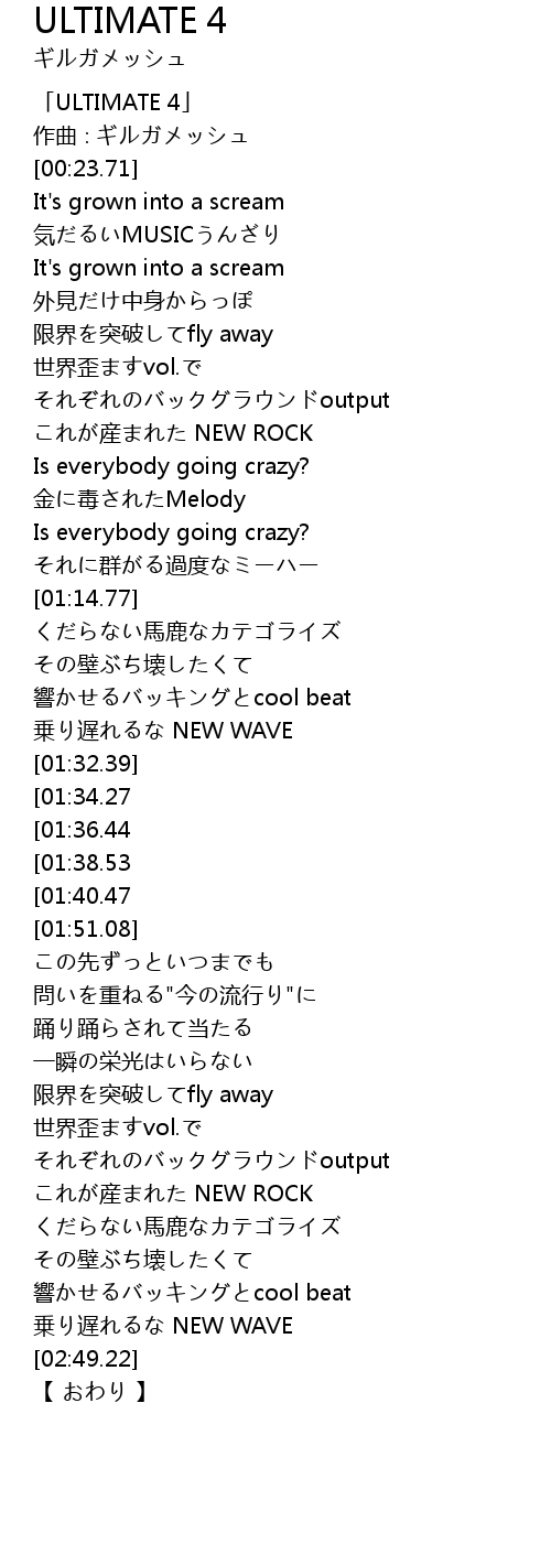| [00:01.71] | 「ULTIMATE 4」 |