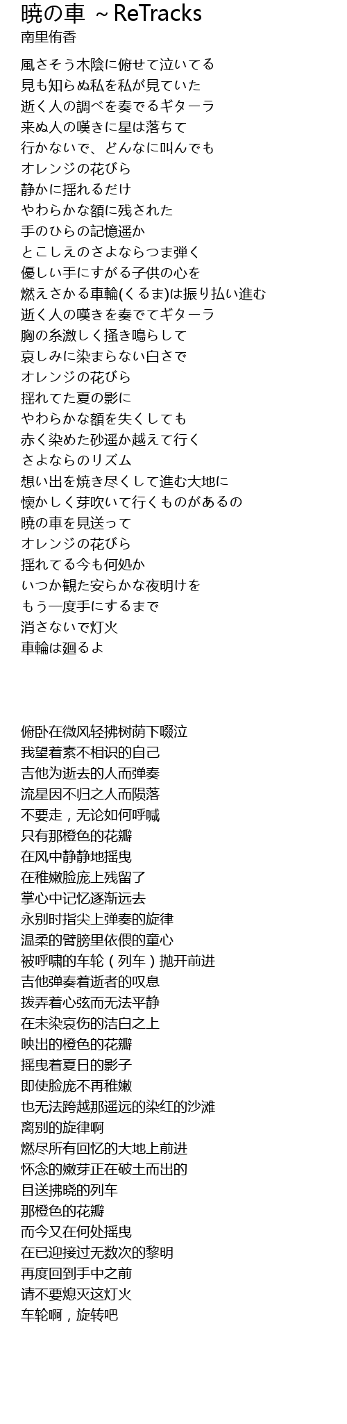 | Song | 暁の車 ~ReTracks |