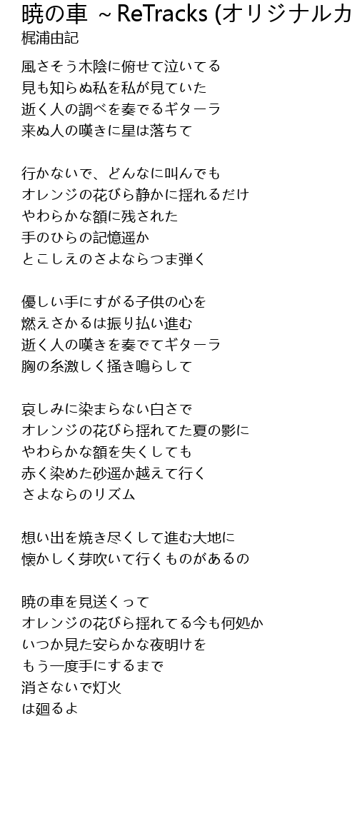 | Song | 暁の車 ~ReTracks (オリジナルカラオケ) |