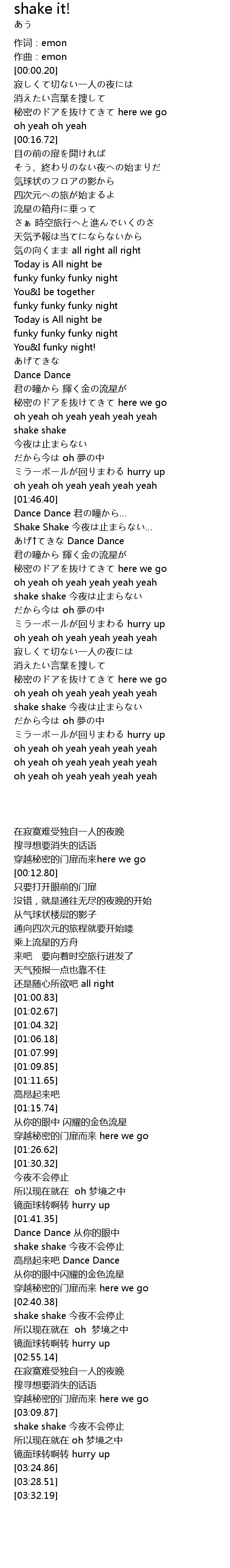 | [02:44.17] | shake shake 今夜は止まらない |