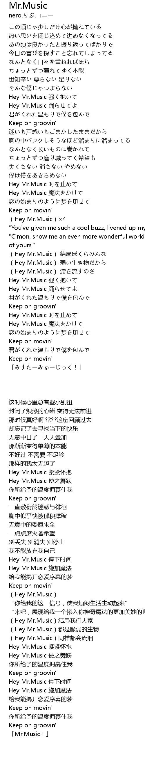 | [03:07.97] | (Hey Mr.Music)×4 |