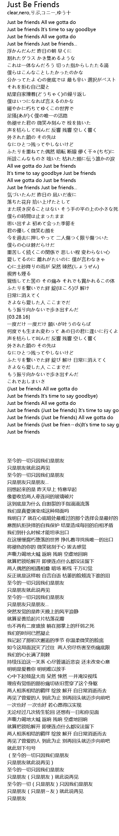 | [04:50.29] | Just be friends Just be friends It' s time to say goodbye |