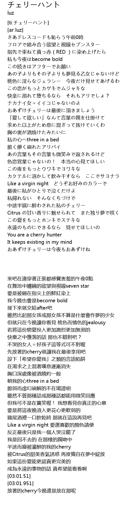 | [03:01.51] | You are a cherry hunter |