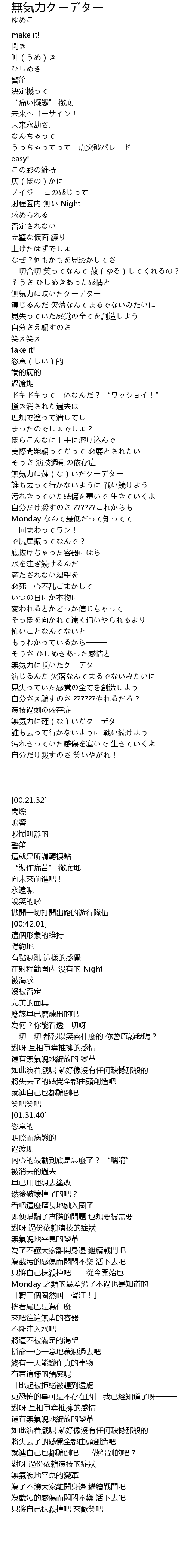 | [02:07.25] | 自分だけ殺すのさ ??????これからも |