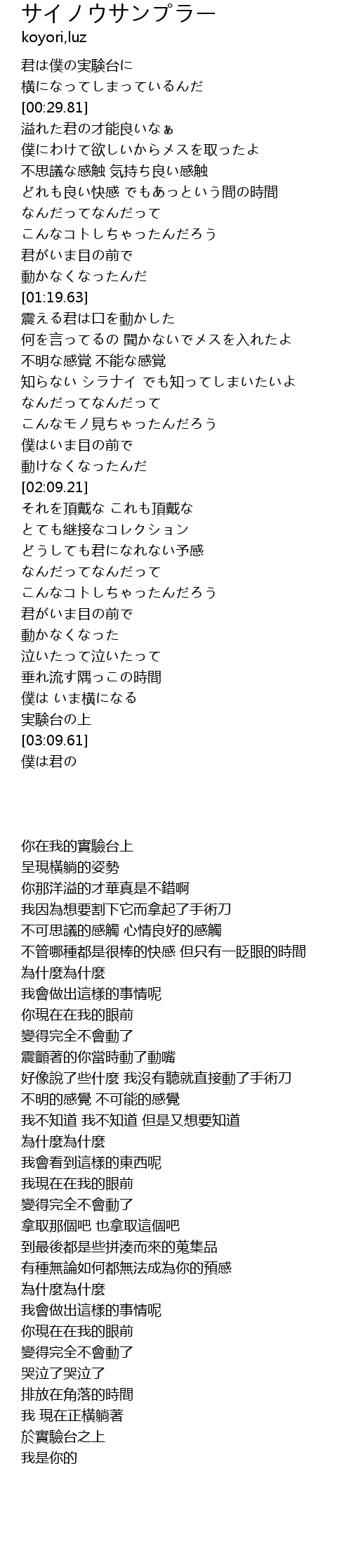 | [03:06.70] | 実験台の上 |