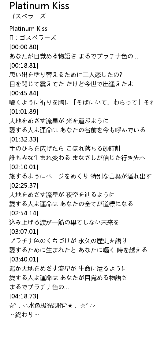| [00:00.20] | Platinum Kiss |