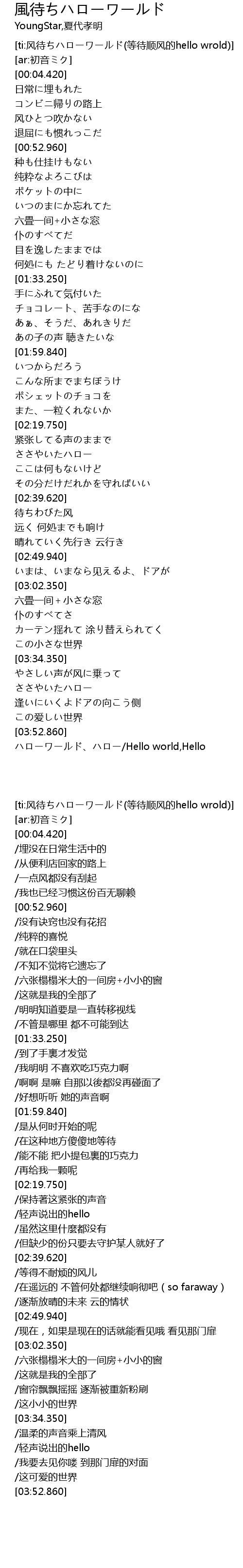 | [03:53.550] | ハローワールド、ハロー/Hello world,Hello |
