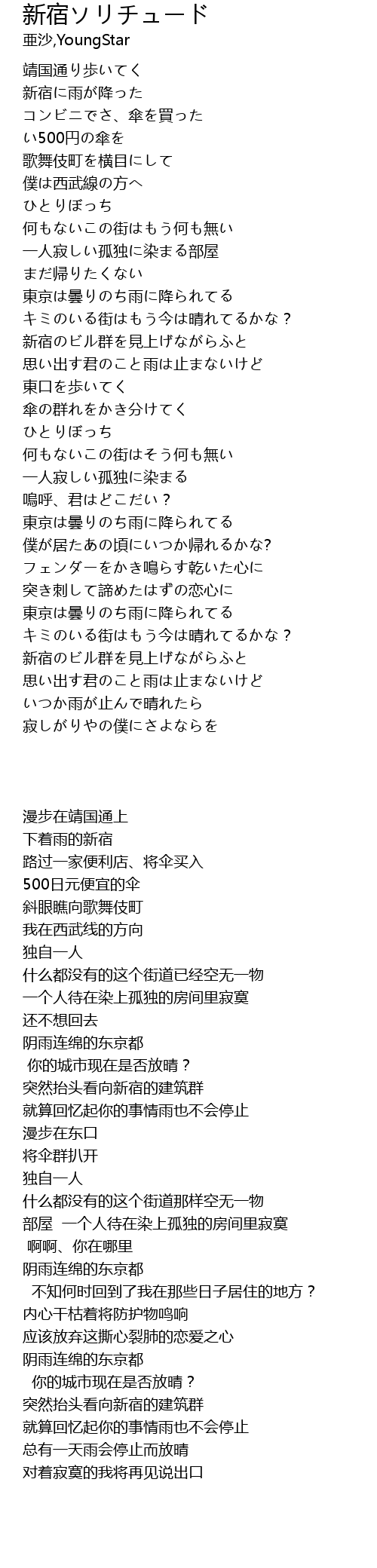 | [02:12.27] | 東京は曇りのち雨に降られてる |