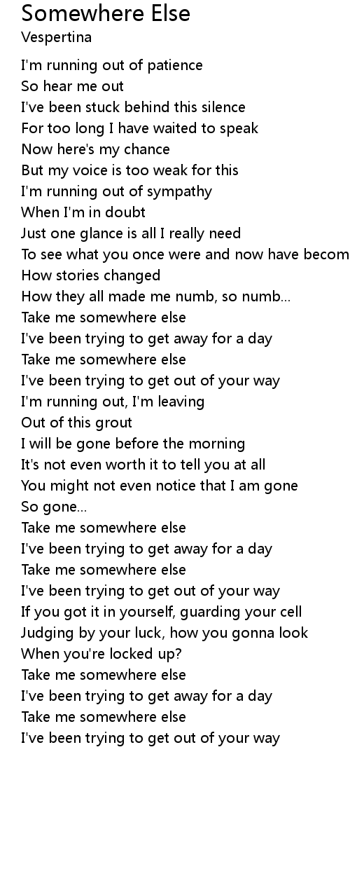 Take me somewhere else |