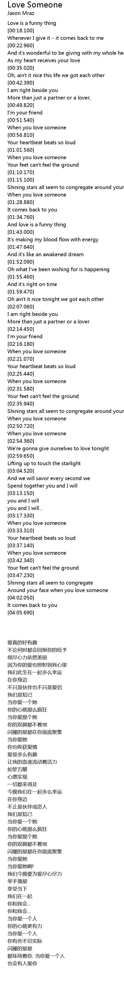 | [03:55.480] | Around your face when you love someone |