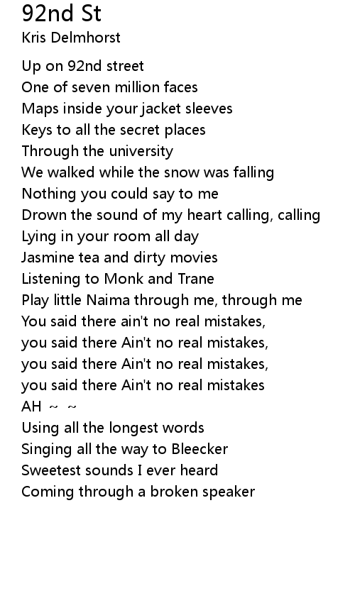 | [00:05.13] | Up on 92nd street |