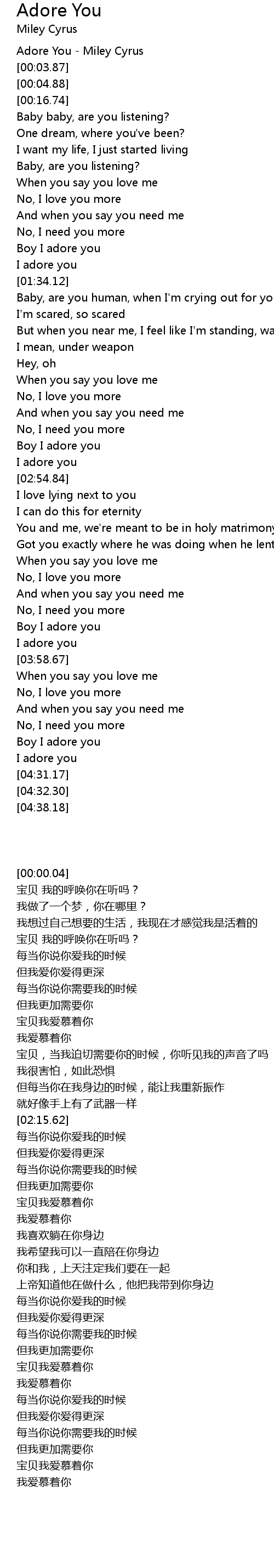 [00:00.04] Adore You - Miley Cyrus
