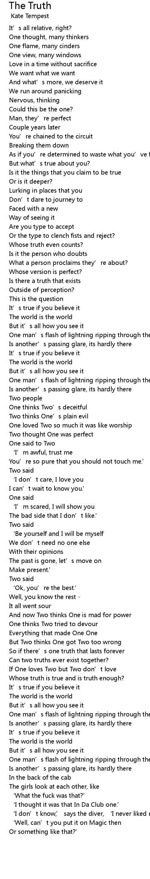 | [02:16.54] | Whose truth is true and is truth enough? |
